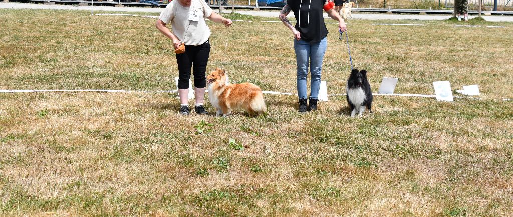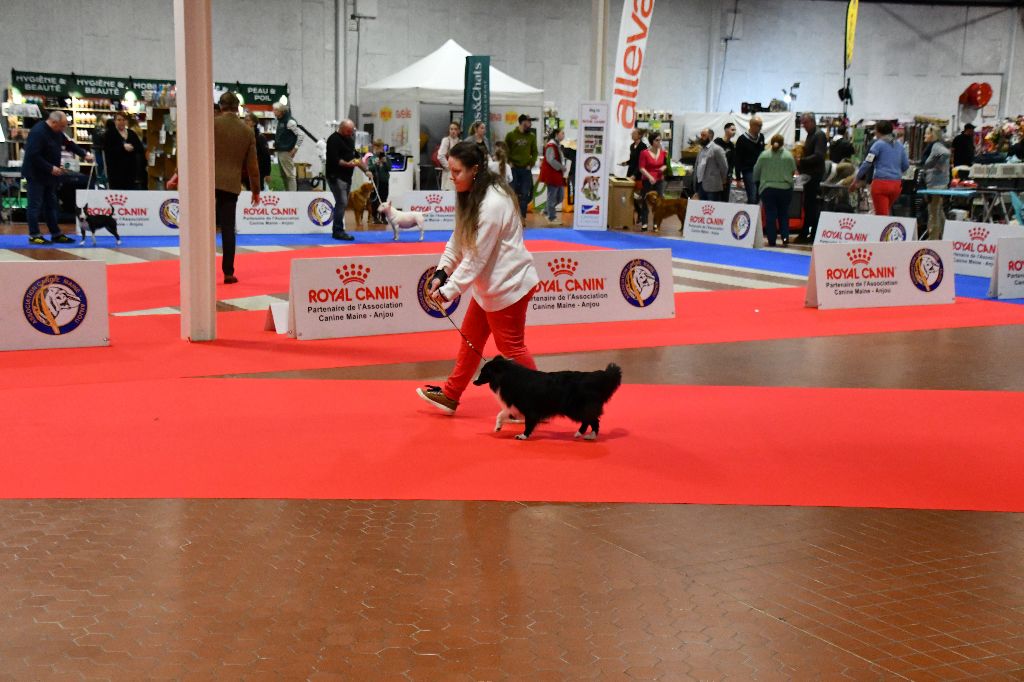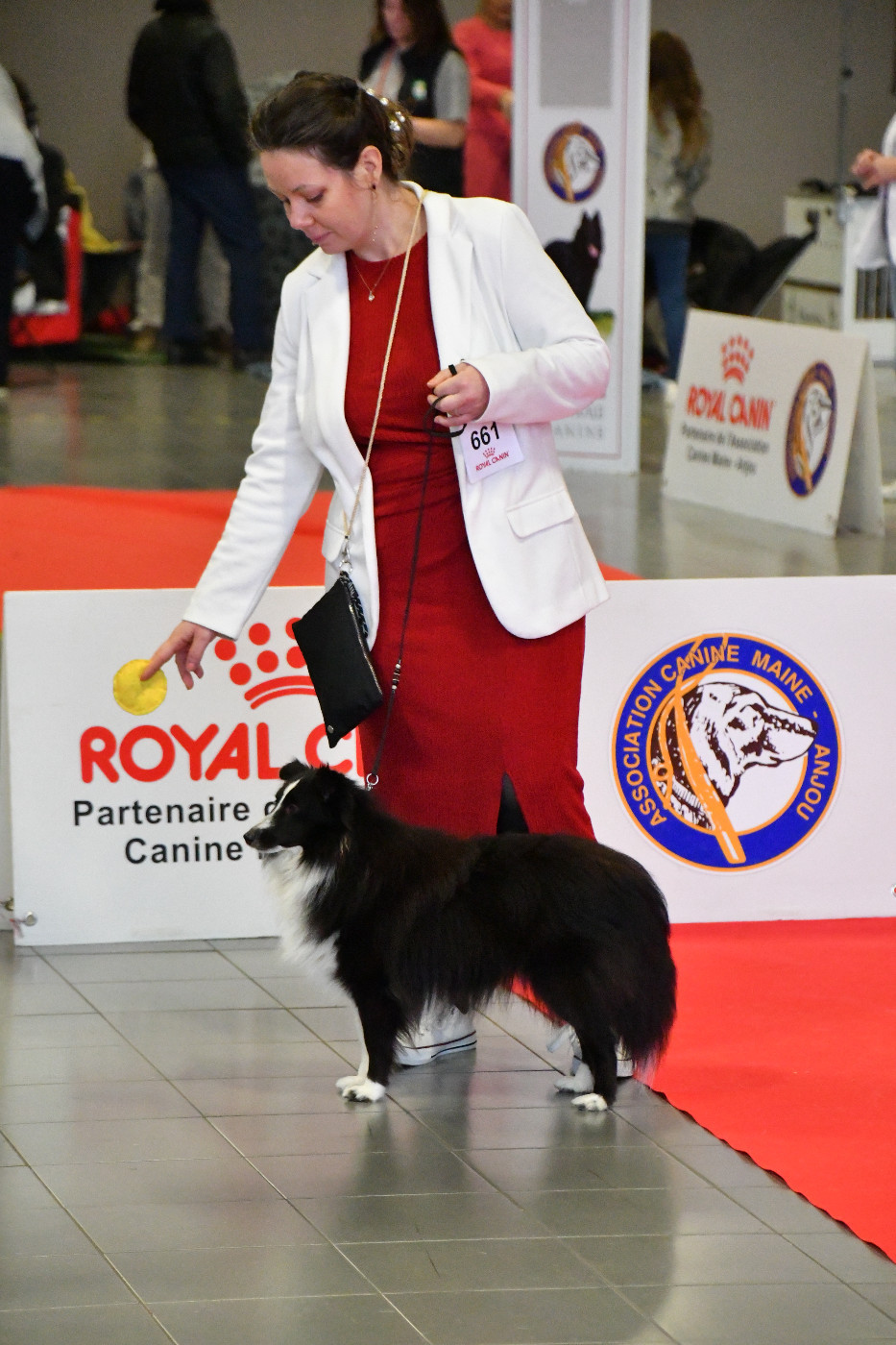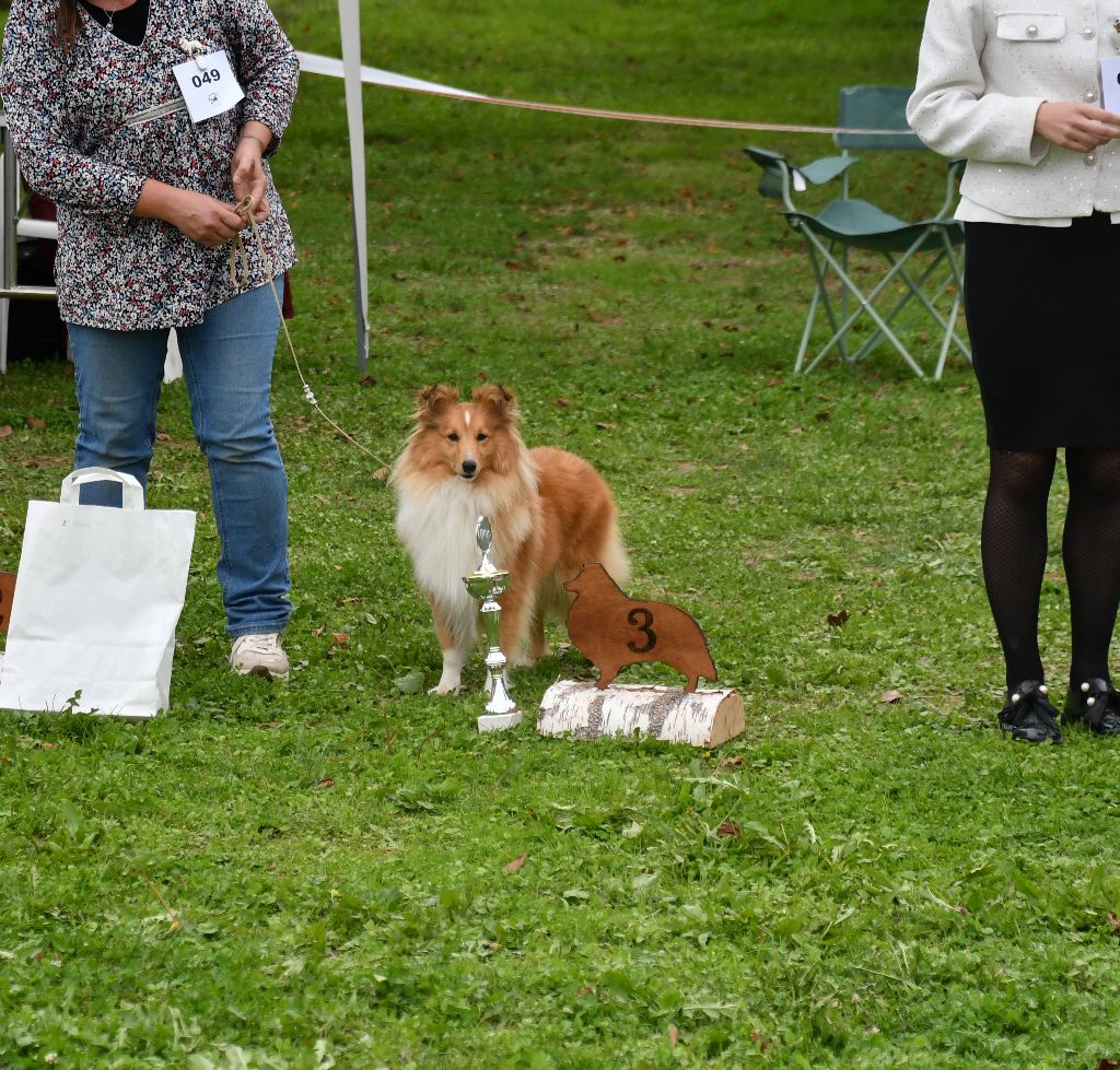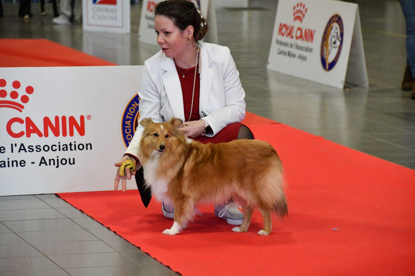 Dans le type, féminine, DCC Belle expression, excellent yeux/stop/port d'oreilles/pigmentation et parallèle Dos ferme/tendu excellente croupe/angulation/ossature/poitrine TB robe (en mue) Excellent pieds/aplombs Excellent mouvement Excellent caractère