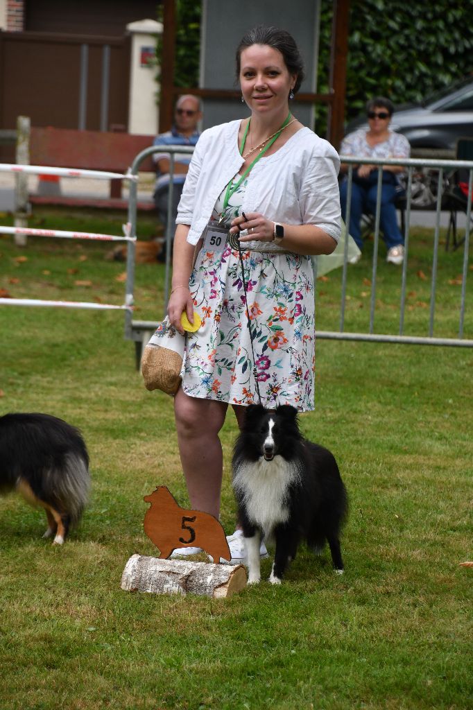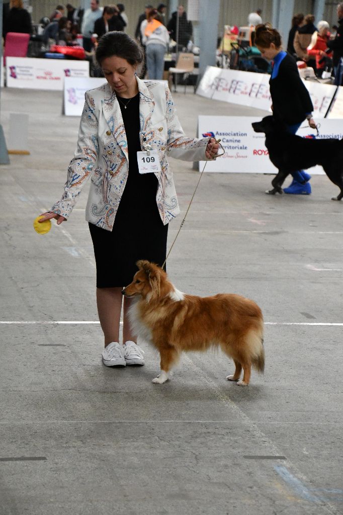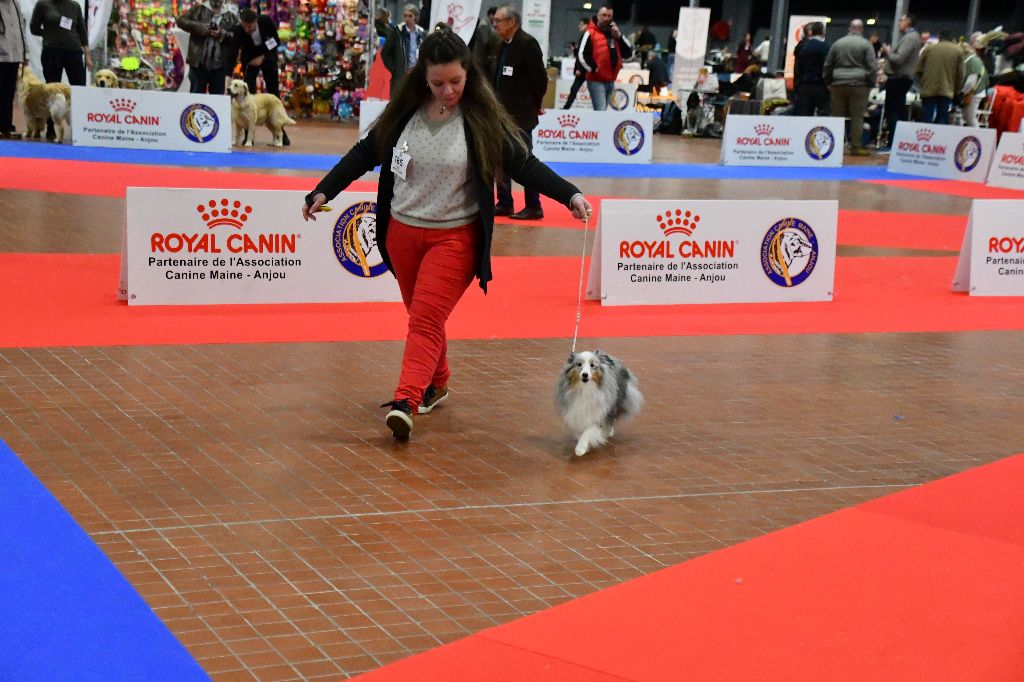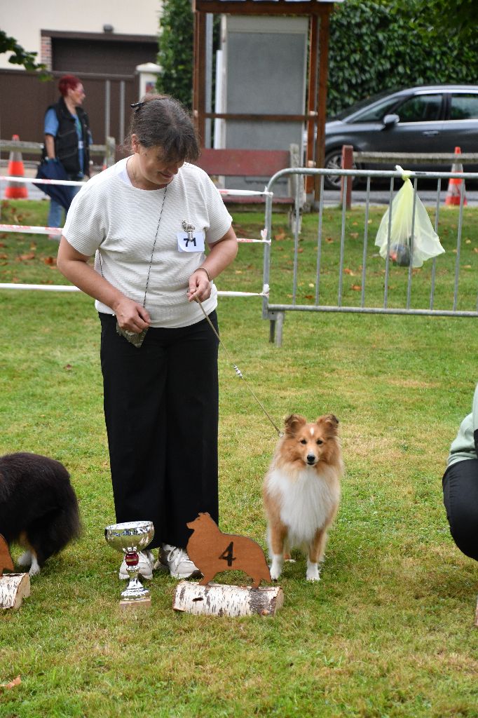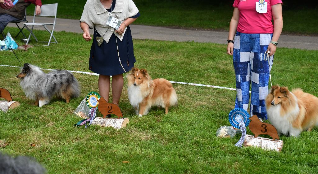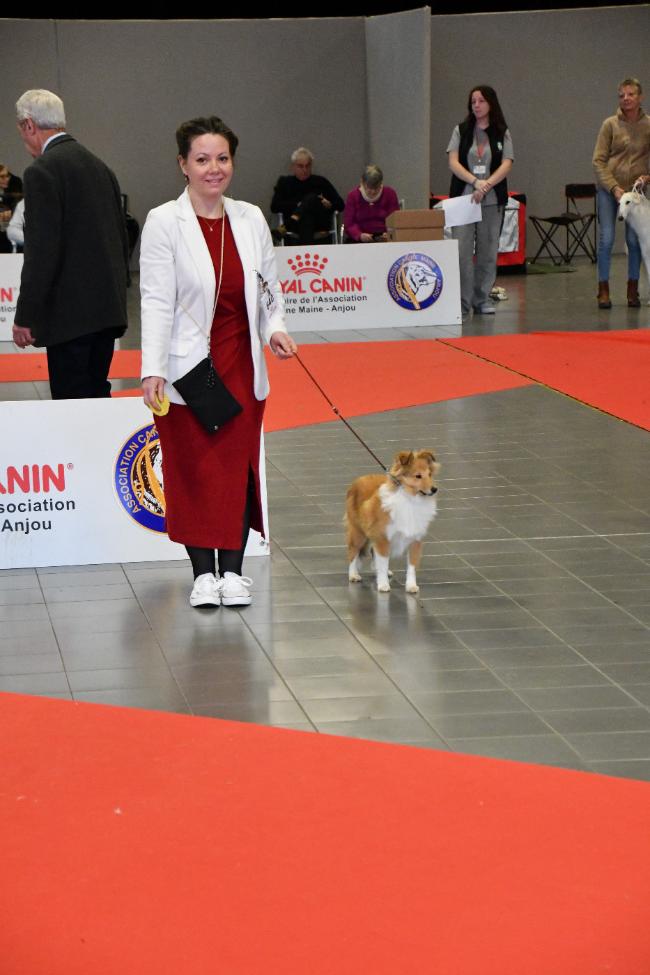 Dans le type, féminine, DCC Belle expression, excellent yeux/stop/port d'oreilles/pigmentation et parallèle Dos ferme/tendu excellente croupe/angulation/ossature/poitrine TB robe (en mue) Excellent pieds/aplombs Excellent mouvement Excellent caractère