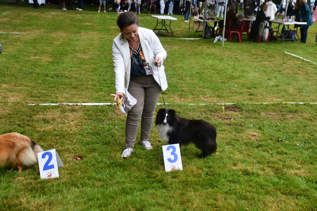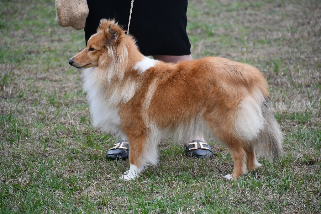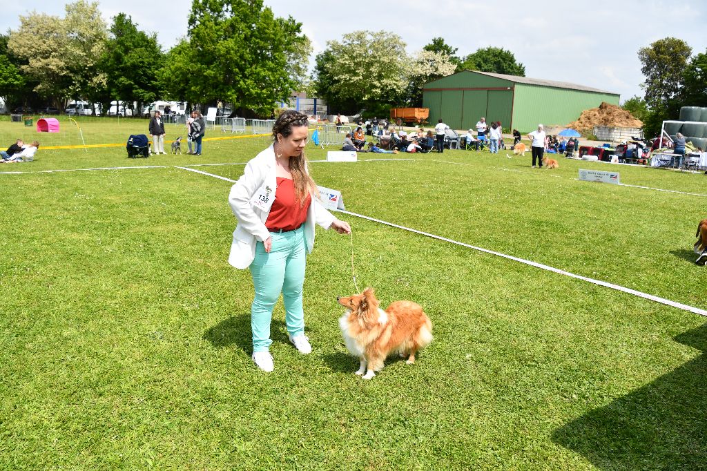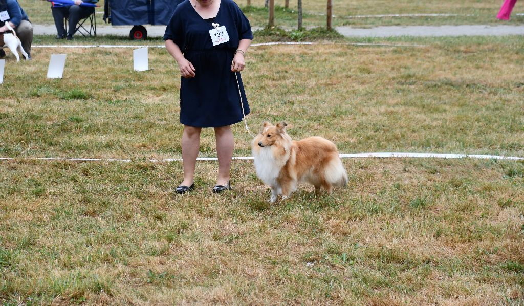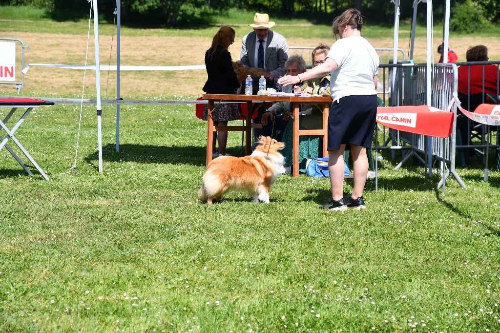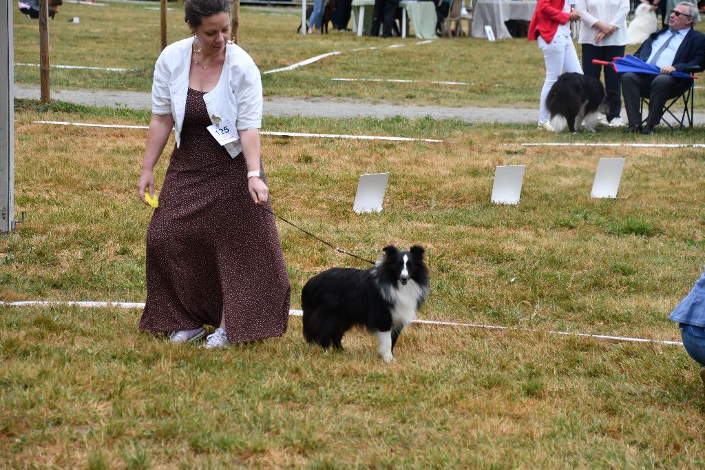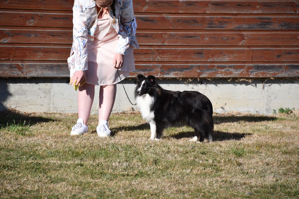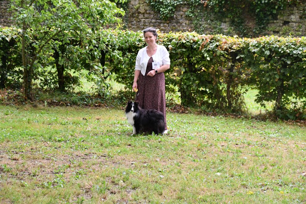 Type parfait, taille compact bon corps, tête féminine belles oreilles et yeux bonne proportion, bonne ossature Très belle construction et angulations proportion parfaite ligne de dos et queue mouvement libre (n'a pas voulu montrer ses dents)