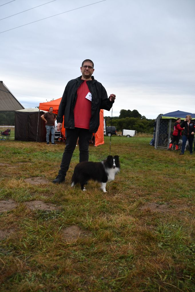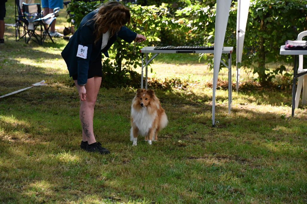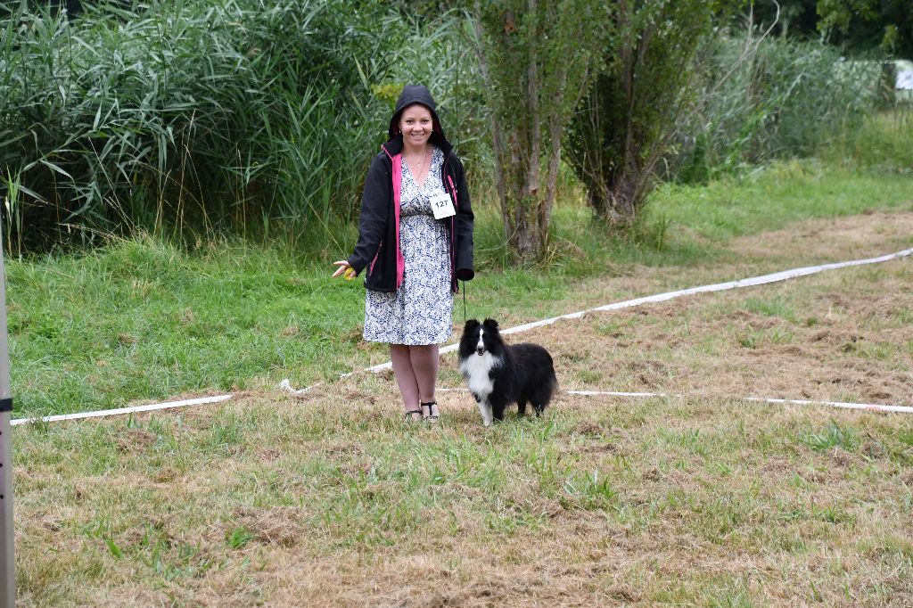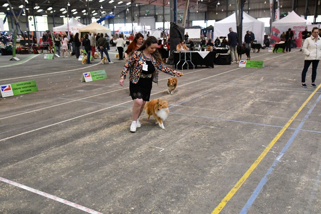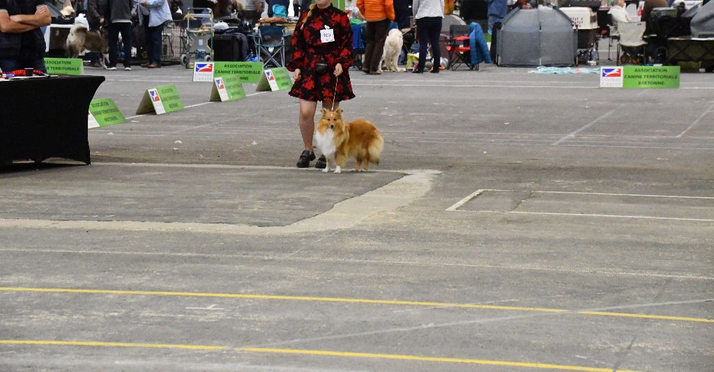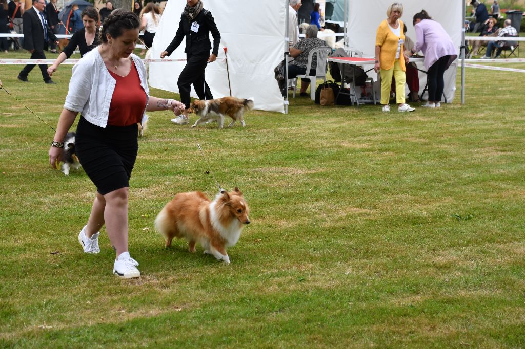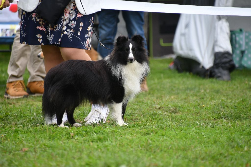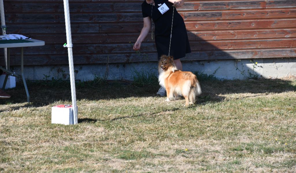 Type parfait, taille compact bon corps, tête féminine belles oreilles et yeux bonne proportion, bonne ossature Très belle construction et angulations proportion parfaite ligne de dos et queue mouvement libre (n'a pas voulu montrer ses dents)