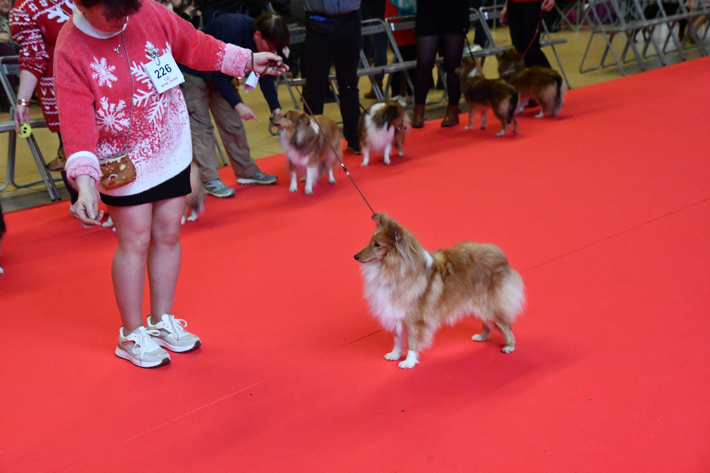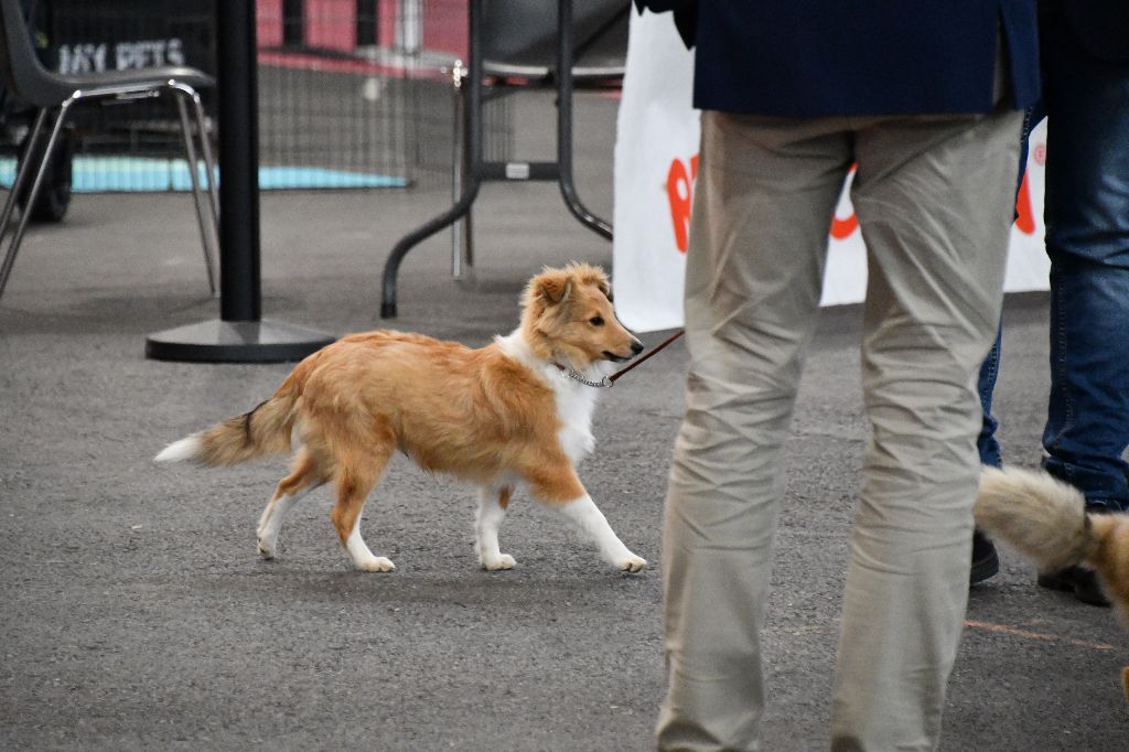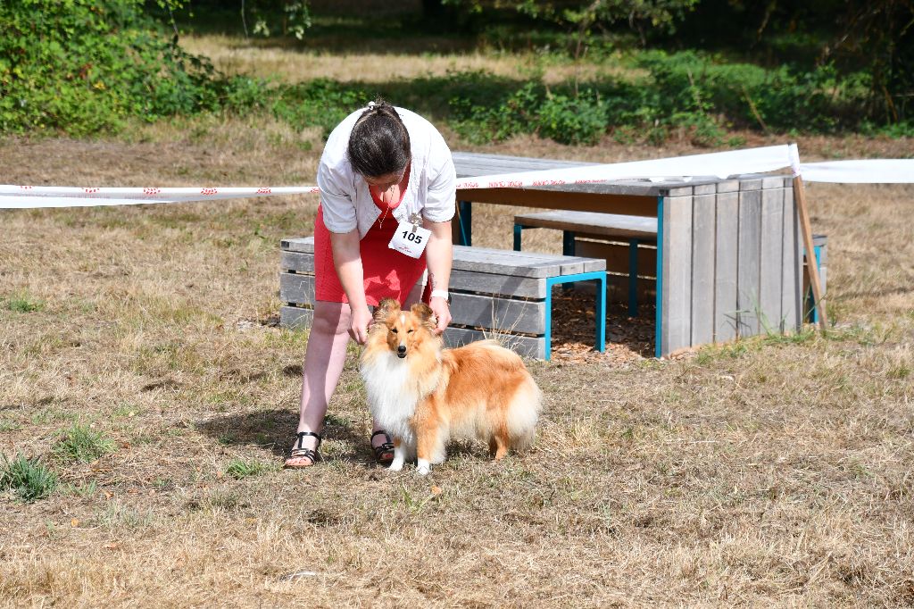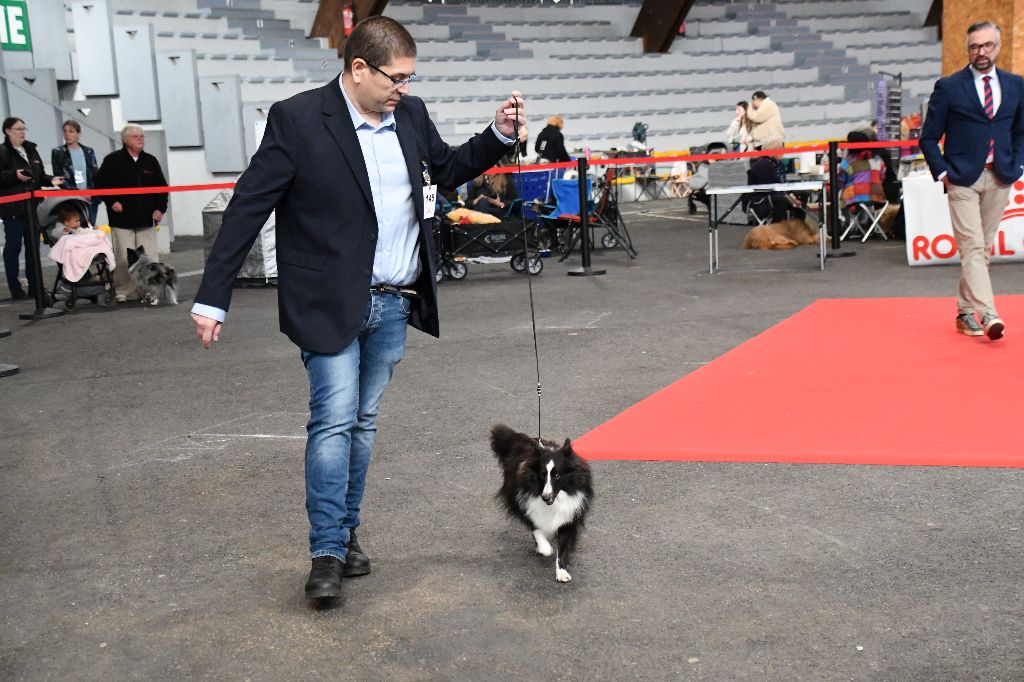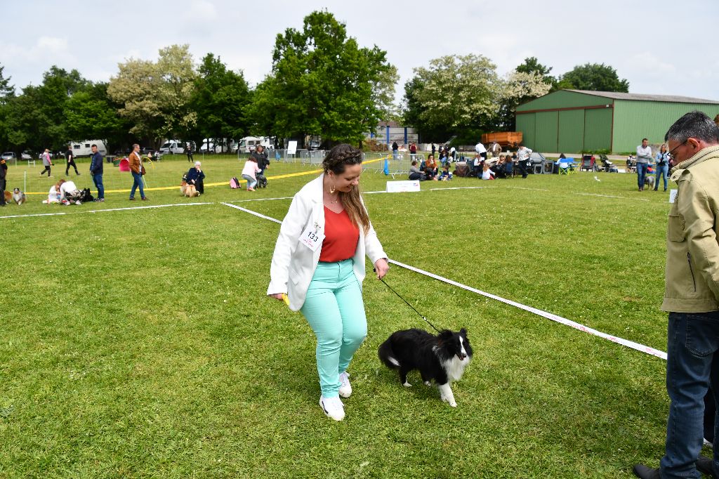 DCC sujet encore léger dans son ensemble Bonne tête, oreilles Excellente encolure ligne du dessus, croupe, cuisses et jarrets Poitrine pas aux coudes Excellent pieds et fouet serre des antérieurs et postérieur à la démarche Le mouvement n'est pas idéal
