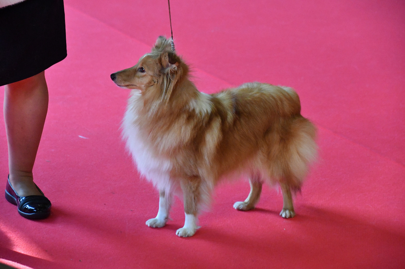 Excellente tête Très bonne expression Excellente poitrine et ligne du dessus excellent corps, fourrure, queue très bon mouvement j'aurai aimé plus parallèle