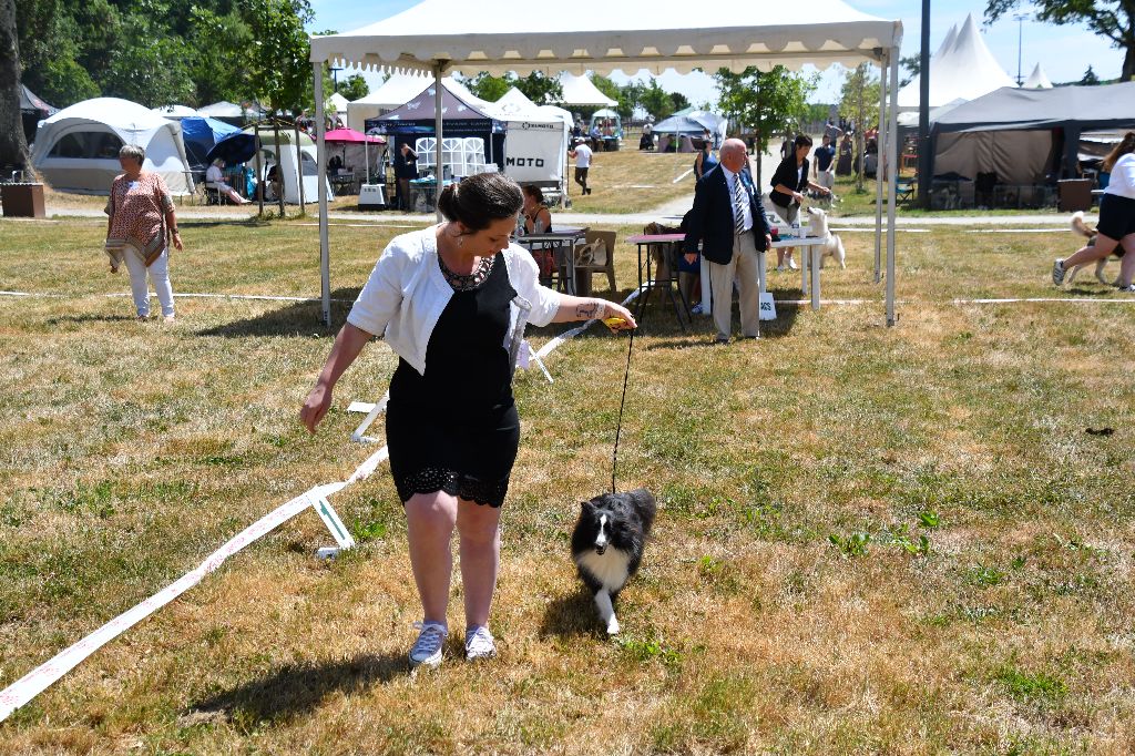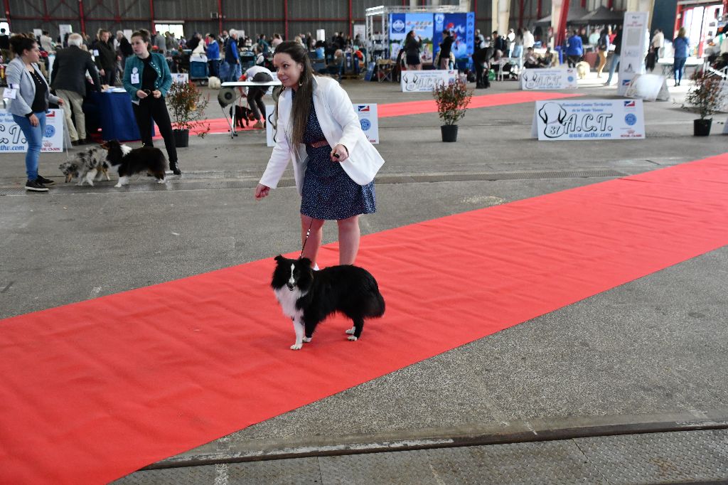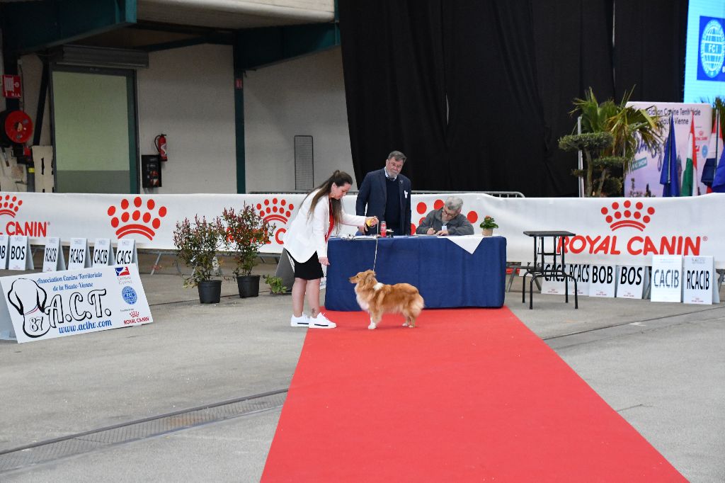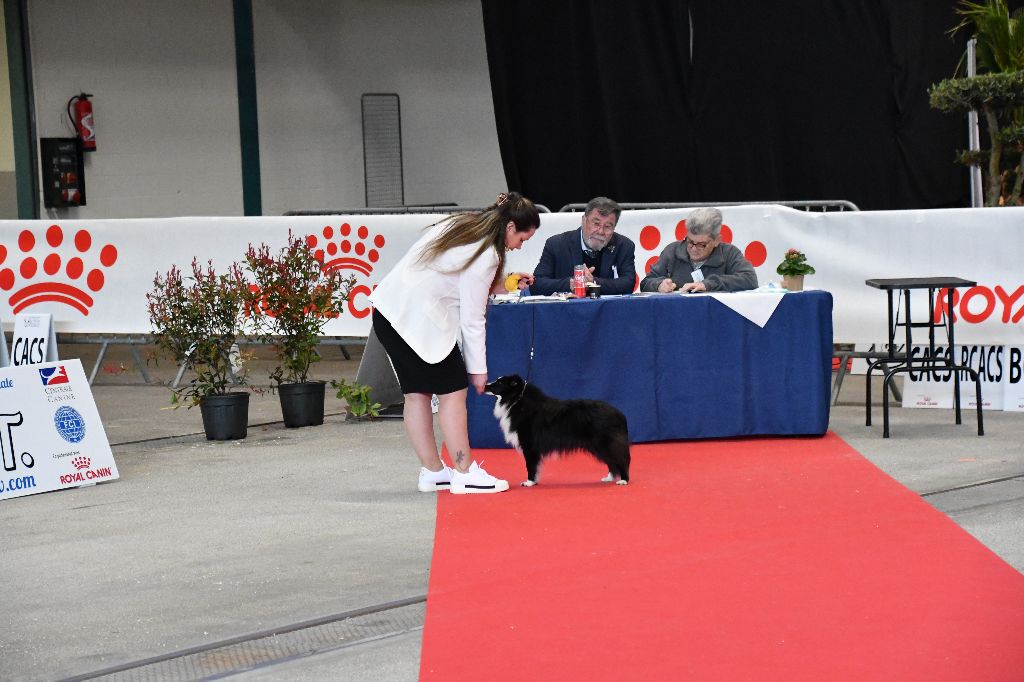 Dans le Type, Féminine, DCC, Exc Proportion, exc yeux, exc port d'oreilles, exc pygmentation, dos ferme, exc croupe, exc angulation avant et arrière, exc poitrine,ossature correcte, exc robe, exc pied, exc aplomb, exc caractère, exc mouvement
