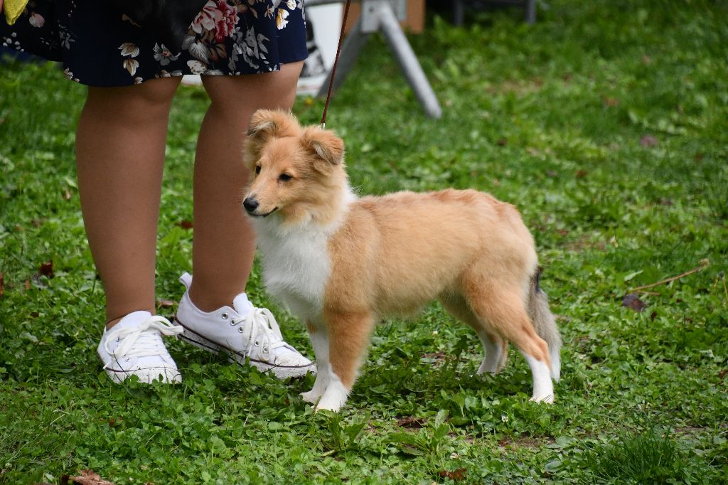 Bonne taille ossature moyenne Tête un peu légère pour son corps bon yeux et oreilles pourrait avoir un peu plus d'encolure et de poitrine bonne longueur de dos et angulation bonne fourrure et mouvement étoile sur le frond