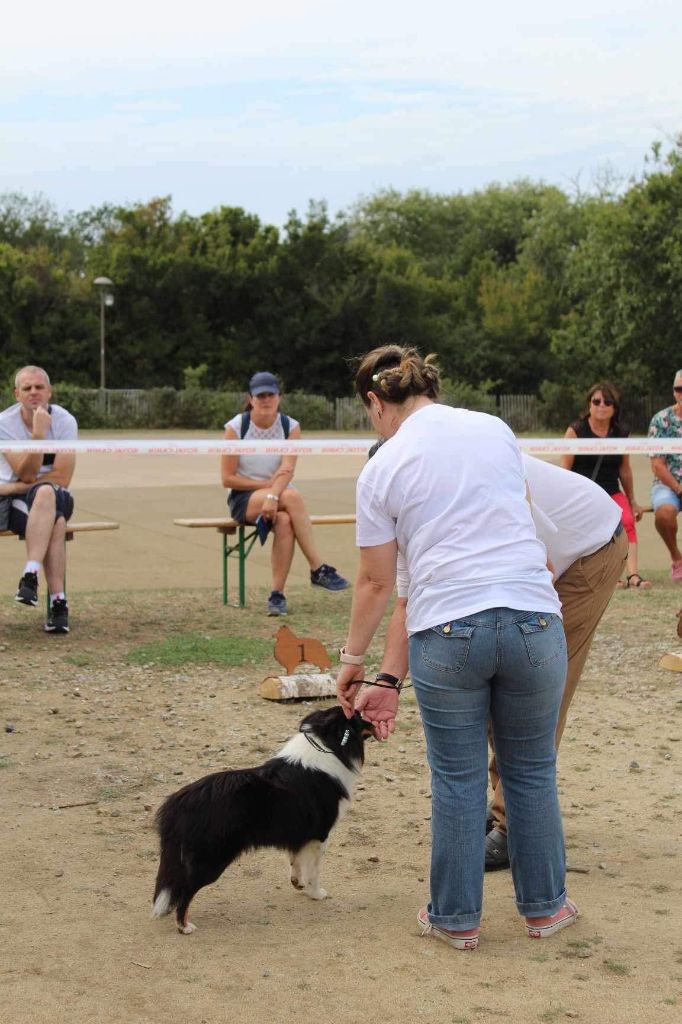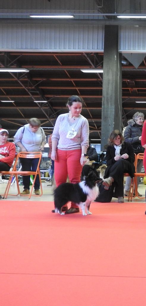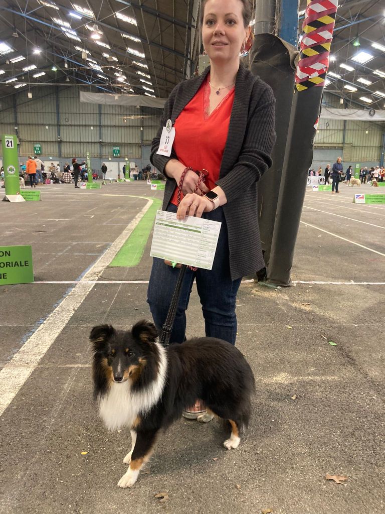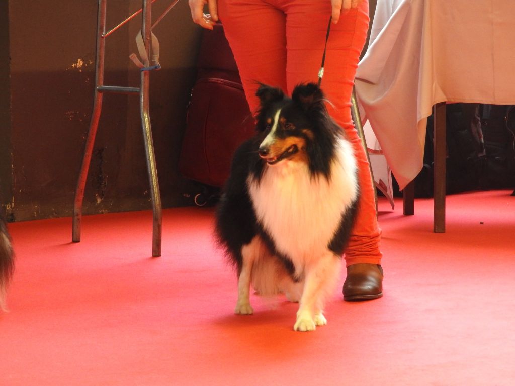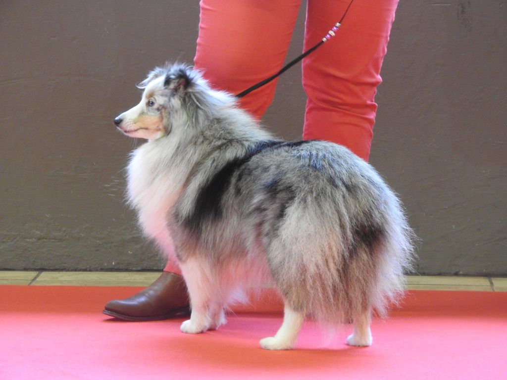 DCC Très bon chien. Très belle tête, le crane demande à se finir. TB expression. Le chien est présumé tricolore mais un certains nombre de poils bleu sont présent sur la tête se qui laisse supposer que c'est un bleu fantôme. TB construction B ligne de dessus Ex aplombs Sujet bien présenté qui devra s?étoffer. N'est pas en condition de poils à ce jour